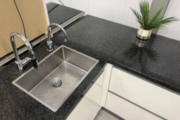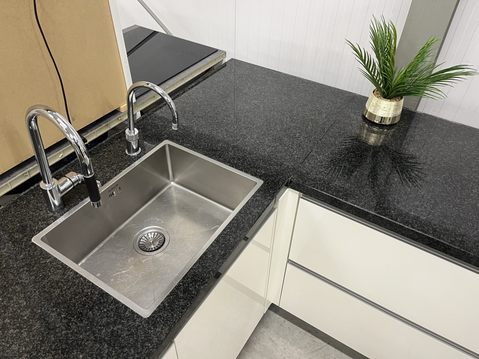 een natuursteen werkblad, een spoelbak,