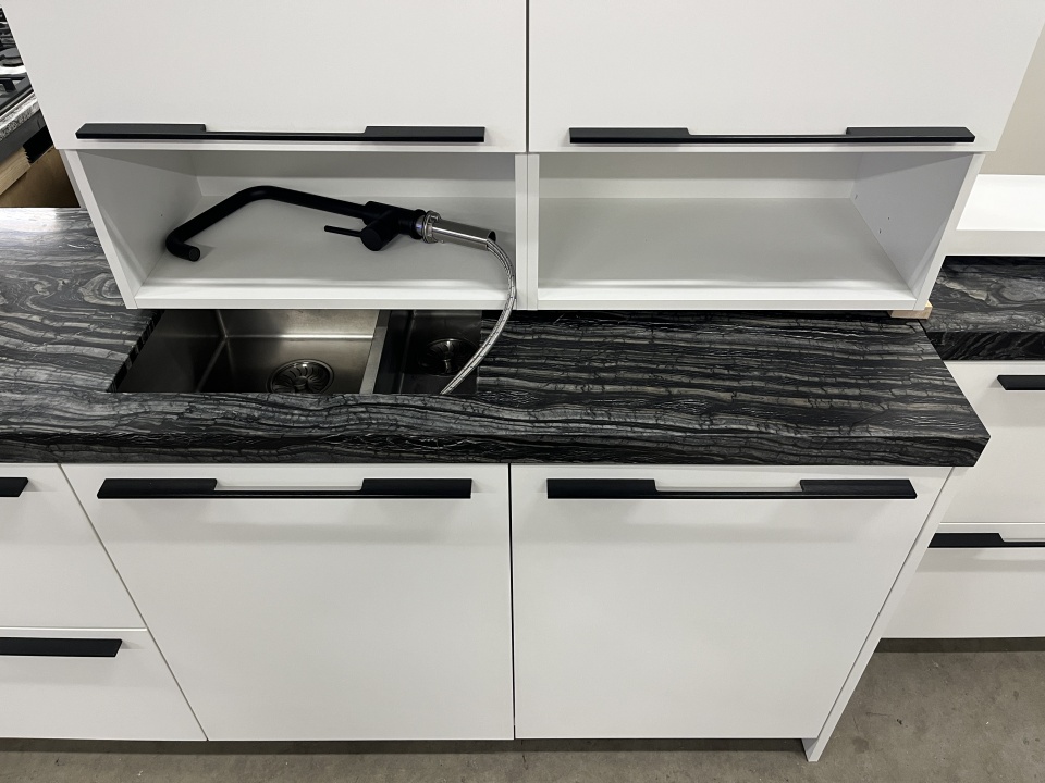 1,5 spoelbak, een zwarte mengkraan van Inventum,