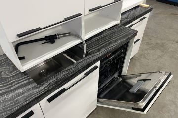 een apothekerskast, een composiet werkblad,